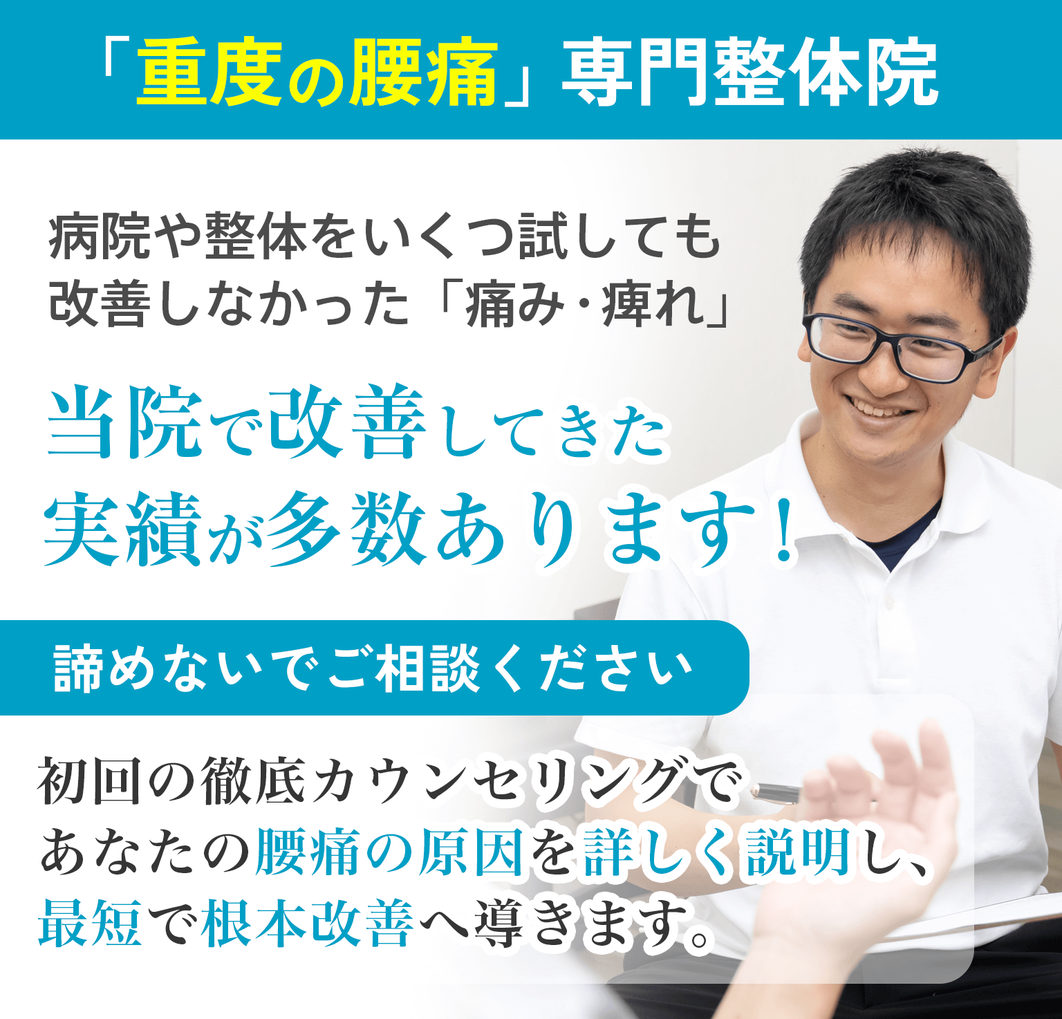 当院は「その場しのぎ」ではなく、「もう腰痛を繰り返さない状態を目指す施術」を提供しています。